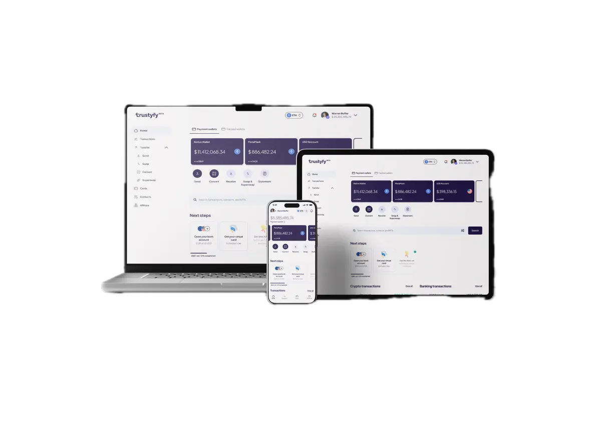 Empower your team with secure, shared control. Trustyfy’s multi-sig wallets require approval from multiple users before funds can move — preventing unauthorized access, eliminating single-point failures, and bringing enterprise-grade safety to your business finances.